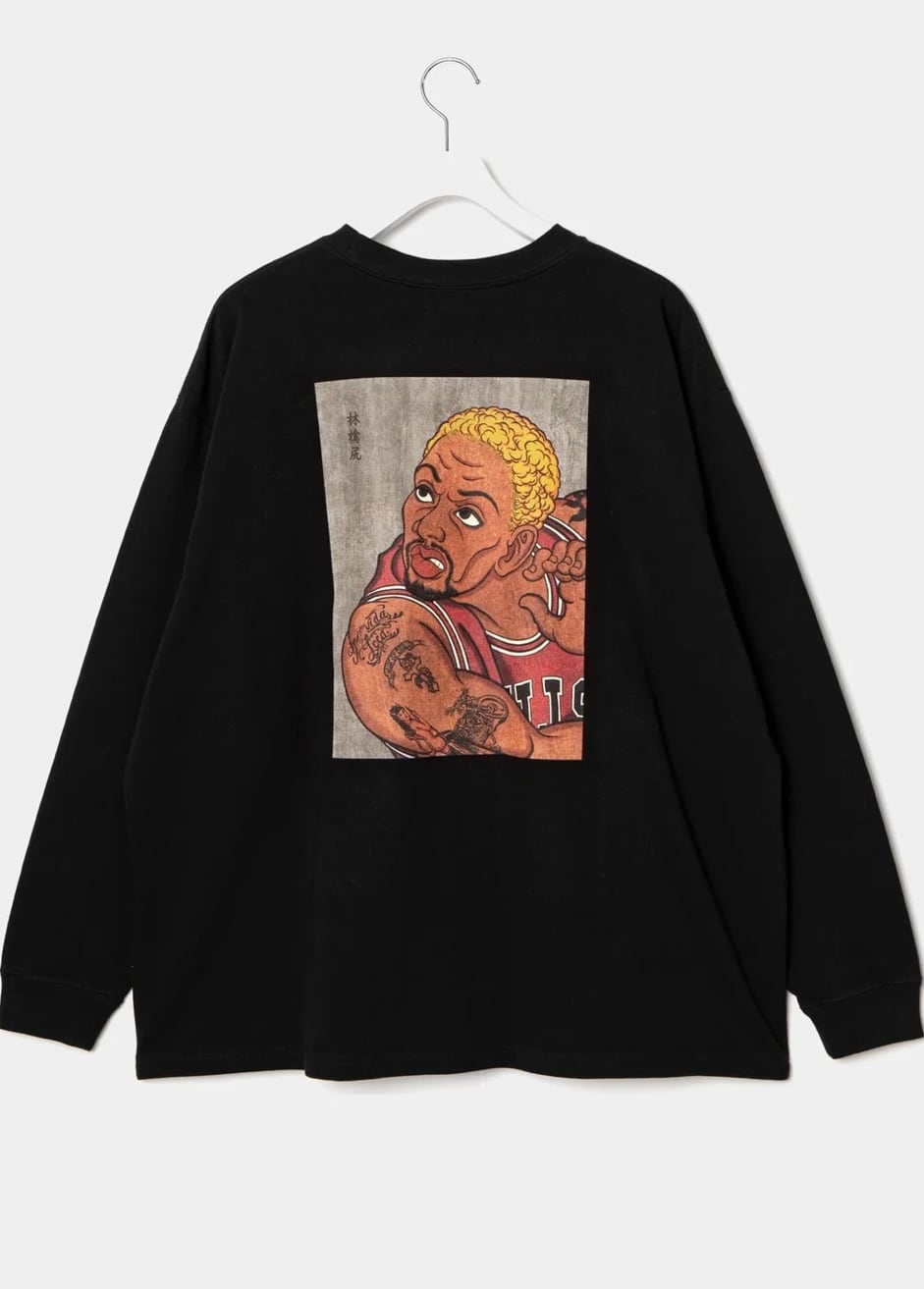 プロスポーツ界で異彩を放ち、その自由奔放なライフスタイルでも注目を集めた“異端児”WORMを、浮世絵の世界観で描いたグラフィックをバックに落とし込んだロングスリーブTシャツ。
