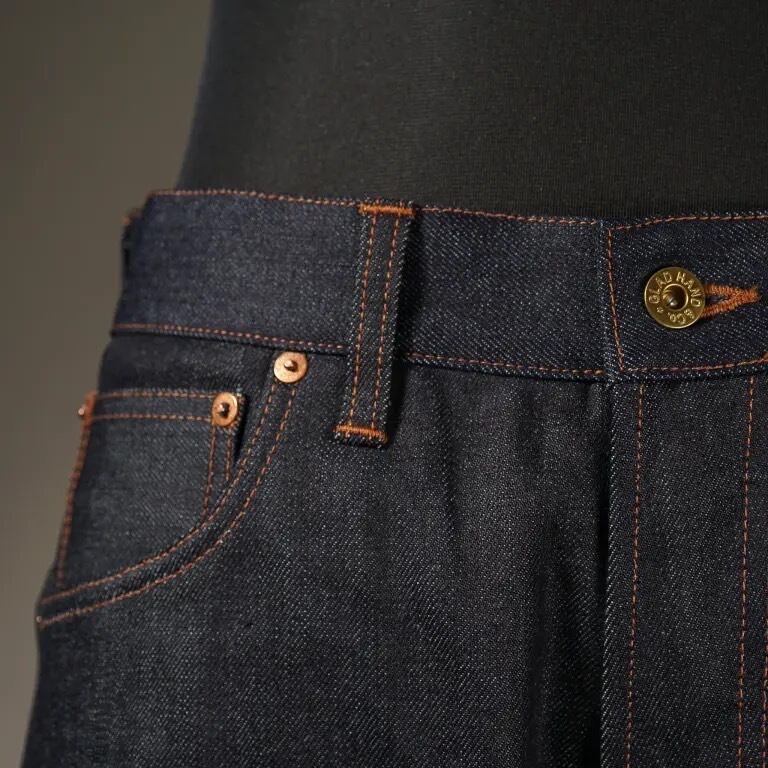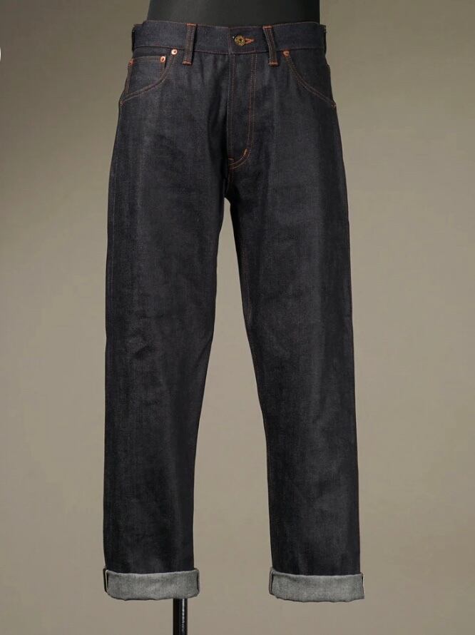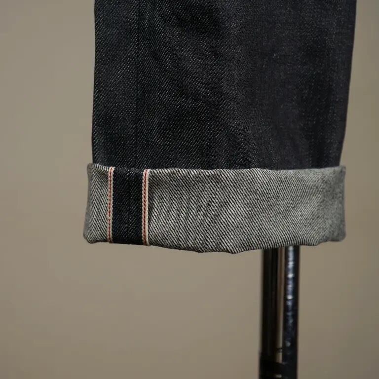 経糸と緯糸で番手を変えることにより、絶妙なムラ感を表現した13.5ozのセルヴィッチデニムを使用した、程よいフィット感のストレートシルエットデニムパンツ。股ぐりやバックヨークなど負担のかかりやすい部分をトリプルステッチで仕上げた堅実な作りと、バックポケットのクロスカンヌキが特徴。