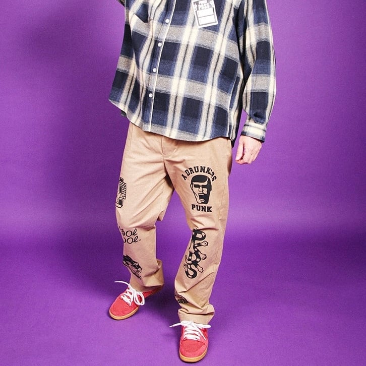 【PUNK DRUNKERS】パンクドランカーズ プリントいっぱいチノパン (BEIGE)