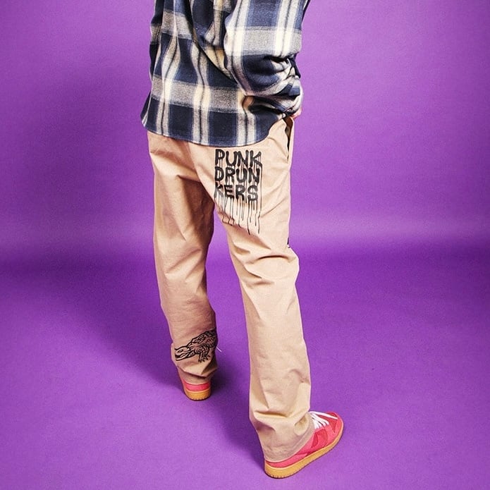 パンクさんらしいグラフィックが沢山プリントされたチノパンツ。