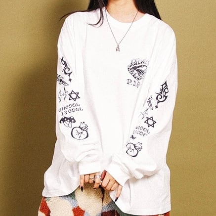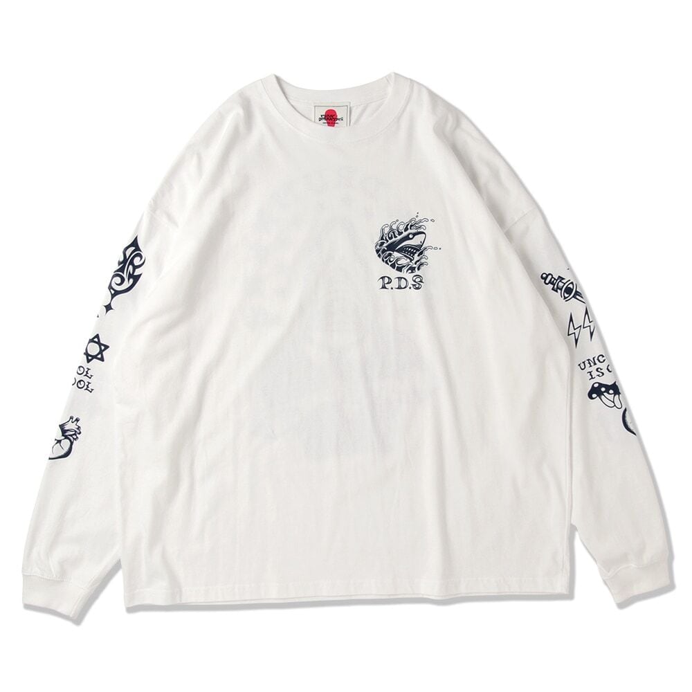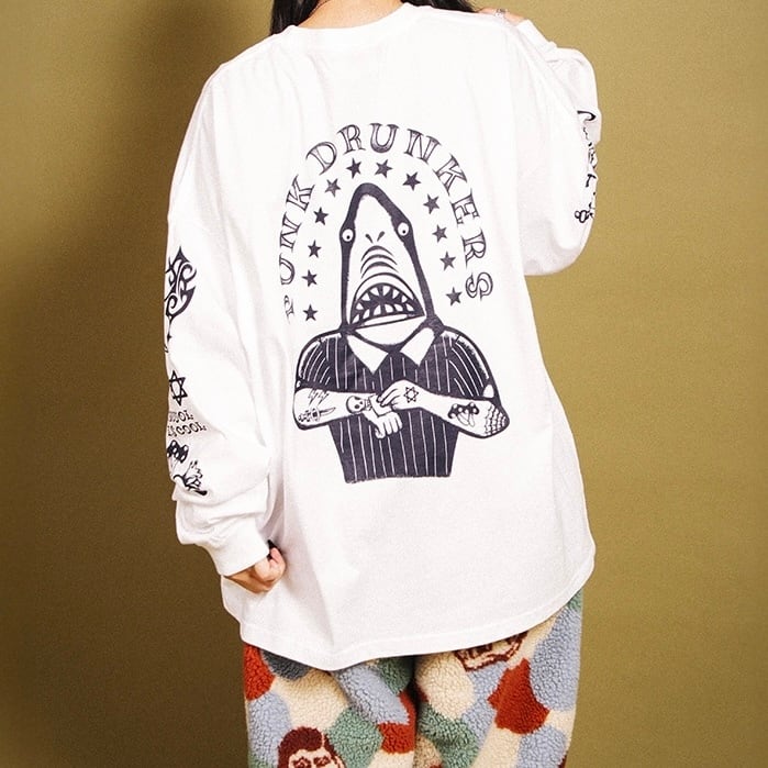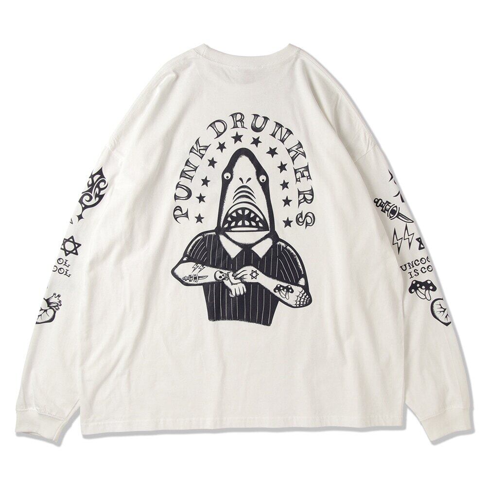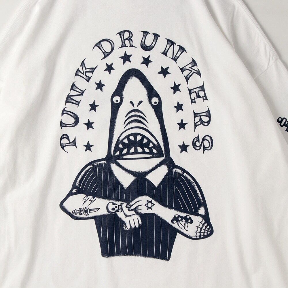 【PUNK DRUNKERS】パンクドランカーズ タトゥー鮫人BIGロンTEE (WHITE)