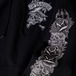 胸元と袖に繊細なグラフィックを施したプルオーバーパーカー。