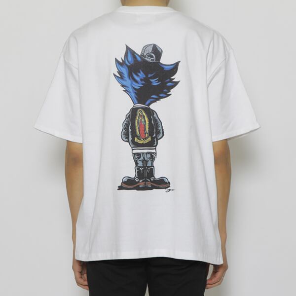 Boo PINSTRIPING によるアートワーク、 " RUDE CAT "をバックに忠実にプリント。 ビッグシルエットのボディに大判で印刷したインパクトのある1枚です。 M, Lの2サイズ展開です。