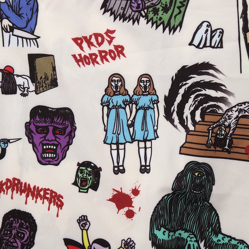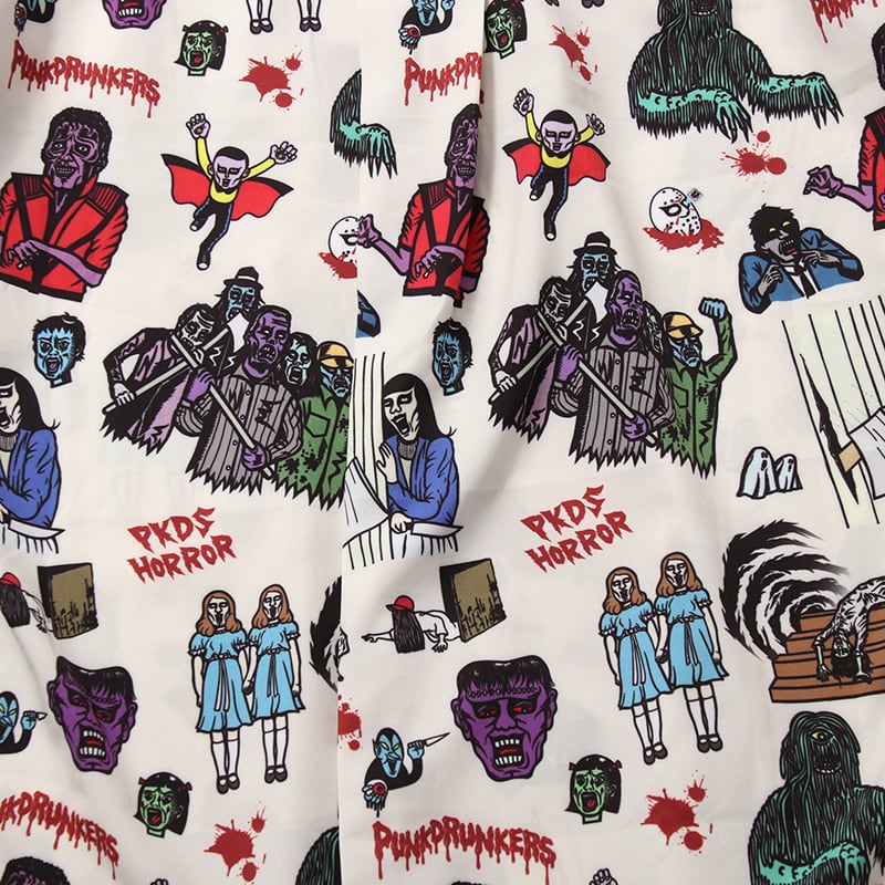【PUNK DRUNKERS】パンクドランカーズ ホラーアロハシャツ (WHITE) オープンカラー総柄シャツ