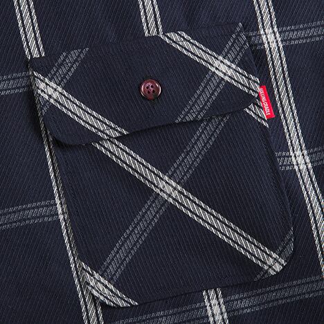 斜め方向に入った畝が特徴のフランス綾チェック生地を採用したオーバーシルエットシャツ。
